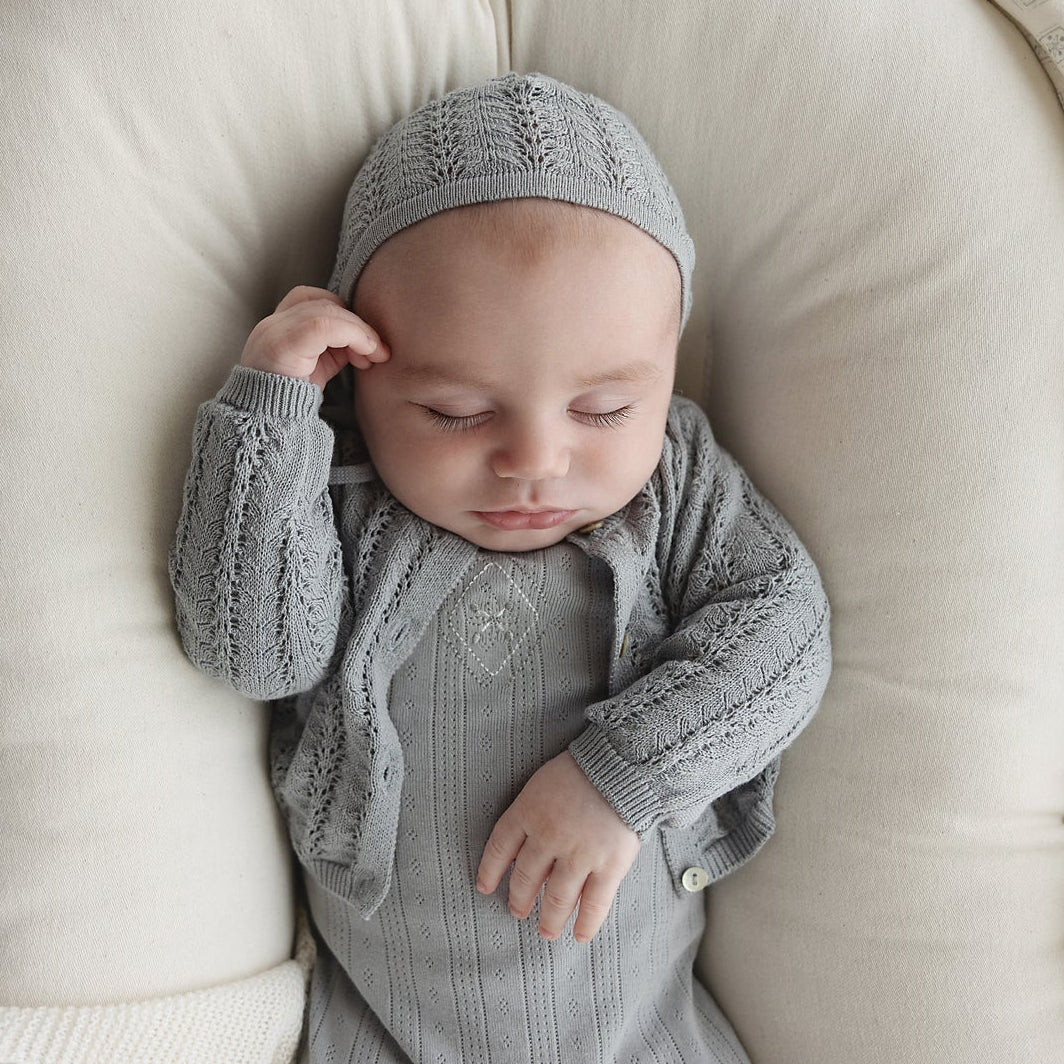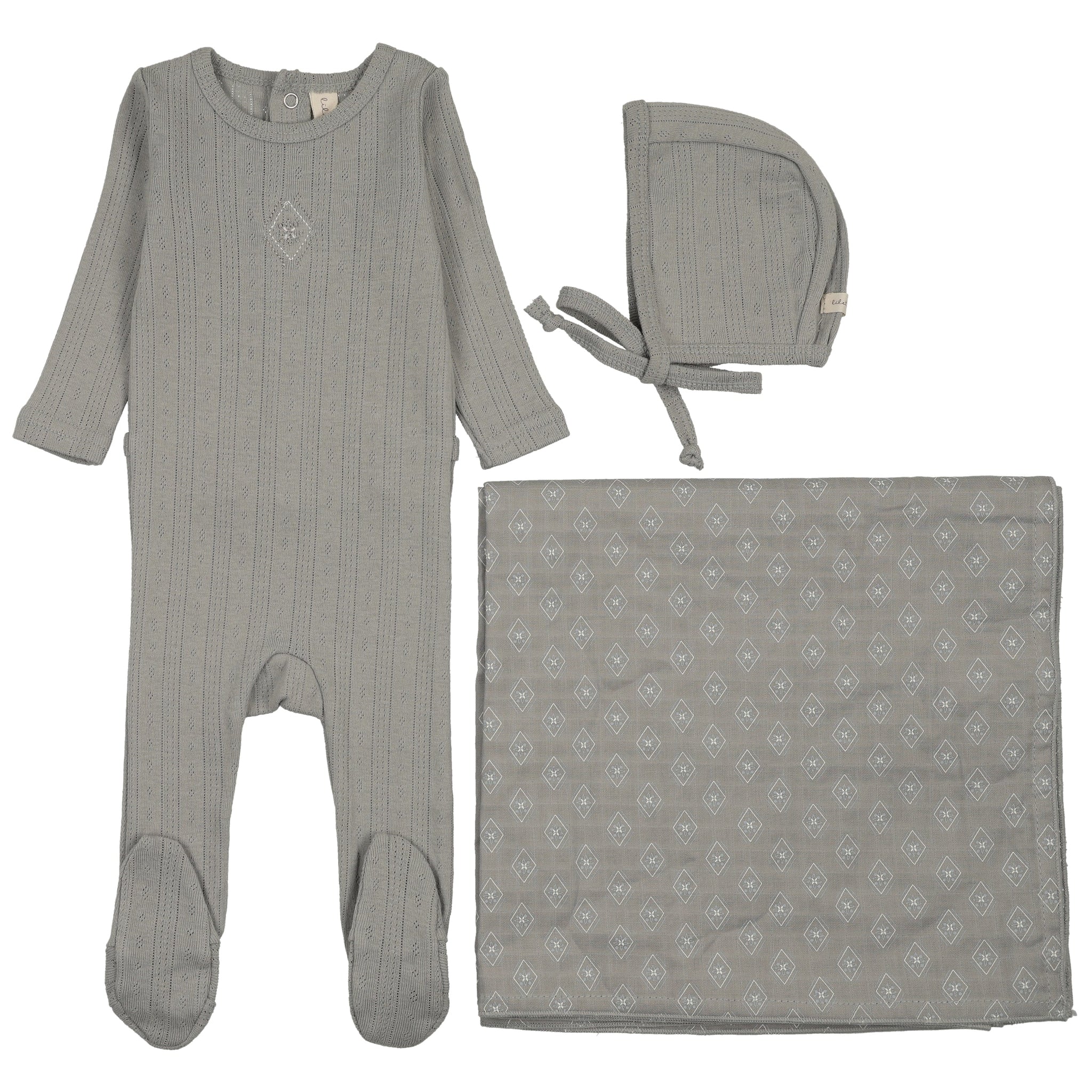 Stretchie and bonnet and blanket