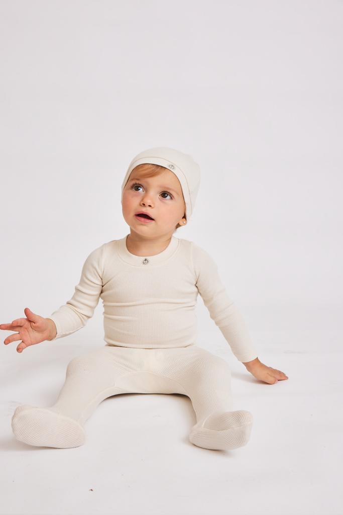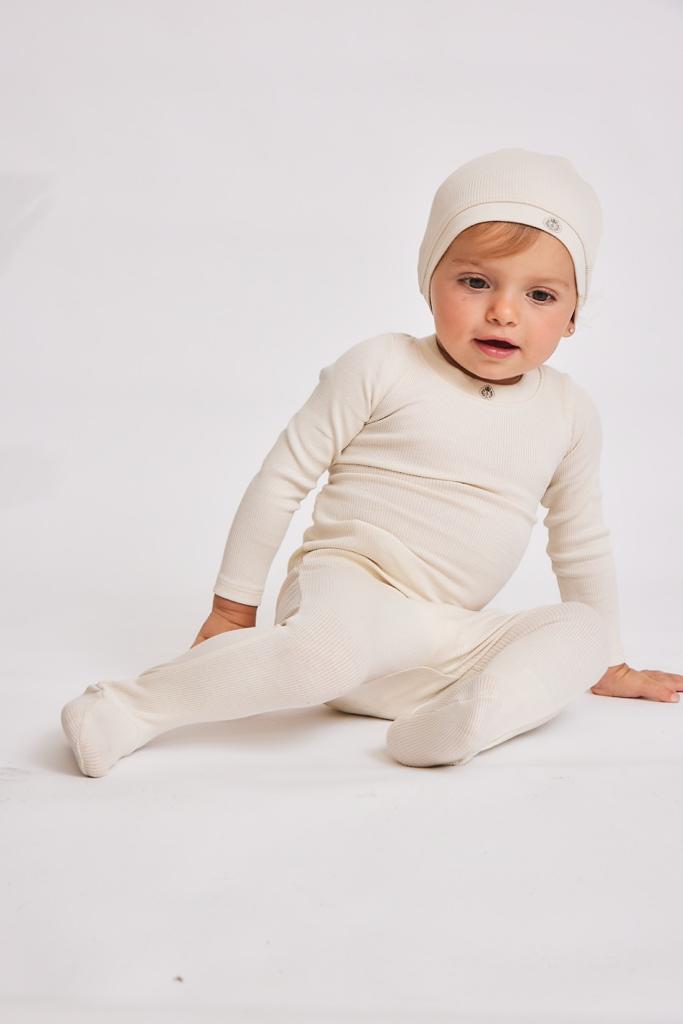 Little Parni White Ivory Logo Footie with Beanie